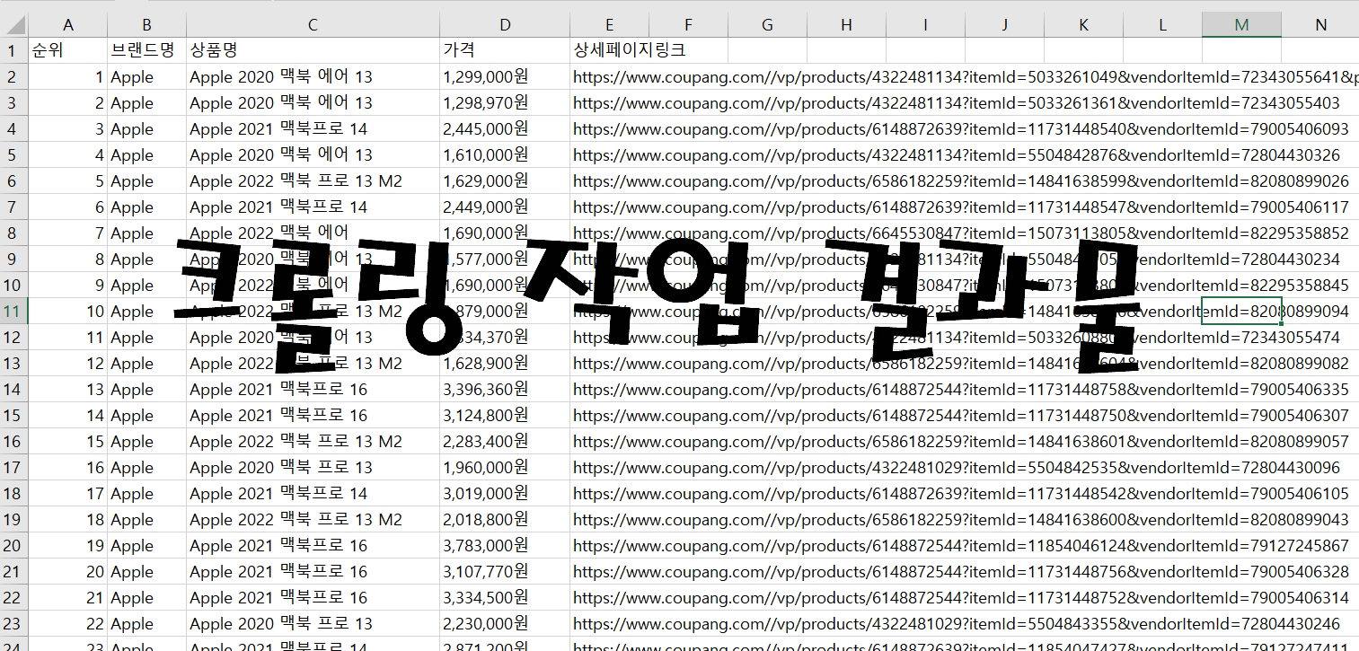 [제공 서비스]- 웹크롤링으로 정보수집하여 DB엑셀저장 해드립니다.- 원하시는 대부분의 크롤링은 가능합니다. (다만, 사이트 보안상 작업이 어려운 경우 작업이 진행되고 있어도 바로 환불 하여 드립니다.)- 크롤링 결과물은 Excel등의 화일로 완벽하게 전달하여 드립니다. (원하시는 양식 또는 소스 코드가 필요하다면 말씀해 주세요)* 불법적이고 비정상적인 크롤링은 일체 하지 않습니다.* 크롤링의 난이도에 따라서 견적이 달라집니다. 문의를 먼저 주시기 바랍니다.[문의시 준비사항]1. 크롤링을 원하는 사이트와 결과물 양식을 자세하게 알려주세요.편안하게 부담 갖지 마시고 무엇이든 문의 주세요!!![크롤링 작업내역]네이버 뉴스본문 크롤링 후 엑셀, 워드저장쿠팡상품 정보 크롤링네이버 쇼핑 크롤링네이버 지도 업체 크롤링네이버 키워드 크롤링 [자동화 프로그램 작업물 내역]네이버 블로그 이웃 추가 자동화 프로그램네이버 블로그 이웃 포스팅 좋아요 자동화 프로그램 1. 상담크롤링을 원하사는 사이트와 결과물 양식을 자세하게 말씀하여 주시면 견적을 드립니다.여러 곳에 찔러 보시거나 & 테스트 개발 진행 중에 잠수 타시는 경우에 불이익이 있을 수 있습니다.양심적으로 상담 진행을 부탁드립니다.2. 결과물 발송삼담을 진행 하신 후 개발이 시작되면 취소가 불가능합니다.작업이 완료되면 결과물을 발송하여 드립니다.(단, 사이트 보안상 작업이 어려울 때가 있습니다. 이 경우 작업이 진행되고 있어도 100% 환불해 드립니다.)3. 수정결과물 받으신 후 오류가 있으면 신속하게 수정하여 드립니다. 1. 크롤링(수집)을 원하시는 사이트 주소 (예시) https://news.naver.com2. 크롤링(수집) 하시려는 데이터 ( 스크린샷으로 전달하여 주세요)3. 결과물 양식 (엑셀 등에 저장할 양식을 알려주세요)