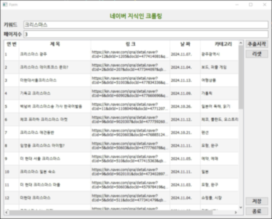 - 제공 서비스 웹사이트 데이터 수집(크롤링) 고객님이 원하는 사이트 대부분이 크롤링이 가능합니다. (단, 사이트 보안상 작업이 어려울 때가 있습니다. 이 경우 작업이 진행되고 있어도 바로 환불해 드립니다) 크롤링 결과는 Excel 등의 파일로 완벽하게 전달해 드립니다. ( 원하는 양식이 있으시면 말씀해 주세요! ) * 불법, 비정상적인 크롤링은 일체 하지 않습니다. * 크롤링 난이도에 따라 견적이 달라지니 문의를 먼저 주시기 바랍니다. 문의시 크롤링을 원하는 사이트, 결과물 양식을 자세하게 알려 주세요. 부담 갖지 말고 무엇이든 문의 주세요~!!- 판매자 소개 실무 경험을 통해 쌓아온 노하우를 기반으로 여러분의 업무를 더 효율적으로 만들어 드릴수 있도록 함께 하겠습니다.- 크롤링 작업물 내역 네이버 뉴스 본문 크롤링후 엑셀 저장 쿠팡 상품 정보 크롤링 네이버 쇼핑 크롤링 RISS 국내 논문 사이트 크롤링 네이버 스마트스토어 크롤링 타오바오 이미지 검색 정보 수집 네이버 키워드 크롤링 네이버 메일 자동화 프로그램 무신사 크롤링 올킬 슈퍼딜 크롤링 데이터 저장 데이터랩 쇼핑인사이트 인기검색어 수집 1. 상담 크롤링을 원하는 사이트, 결과물 양식을 자세하게 말씀해 주시면 견적을 보내드립니다. 여러 곳 찔러보기, 테스트 개발 진행중 잠수 타기는 불이익이 있을 수 있습니다. 양심적으로 상담을 진행해 주세요.2. 발송 상담 진행 후 개발이 들어가면 취소가 불가능 합니다. 작업이 완료되면, 결과물을 발송해 드립니다. ( 단, 사이트 보안상 작업이 어려울떄가 있습니다. 이 경우 작업이 진행되고 있어도 100% 환불해 드립니다 )3. 수정 결과물을 받으신 후 오류가 있다면 빠르게 수정해 드립니다. - 크롤링을 원하는 사이트 주소(예시) https://news.naver.com/- 수집하려는 데이터( 스크린샷 또는 동영상으로 보내 주시면 좀 더 빠르게 답변을 받으실수 있습니다. )- 결과물 양식( 엑셀 등에 저장할 양식을 알려주세요 )