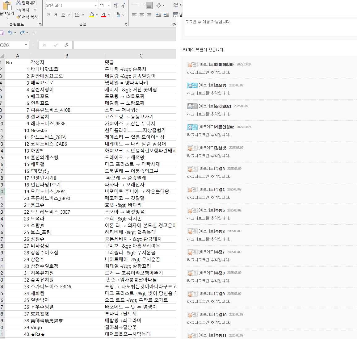 웹(인터넷)에 수많은 데이터(자료)를 수집 및 정리가 필요하세요?사이트주소(URL)만 있다면 정확하고 확실한 데이터를 수집하여 전달드립니다결과는 Excel(엑셀) [xlsx, CSV]로 만들어 전달드리며,주기적으로 사용가능한 프로그램 제작도 가능합니다 1. 크롤링 의뢰2. 크롤링 가능여부 확인 및 고객 협의(크롤링 페이지 난이도 판별, 불법여부 판단, 필요정보 교환)3. 작업 진행4. 데이터 제공 및 수정 작업 진행5. 완료 의뢰인은 크게 준비사항이 필요 없습니다웹사이트 주소와 필요한 데이터만 알려주시면됩니다(상황에 따라 추가정보를 요구할 수 있습니다. (ex : 로그인 정보 등등))## 사이트 주소- 크롤링이 필요한 사이트 주소 또는 특정페이지를 알려주세요## 수집하려는 항목- 게시판의 제목, 댓글 등 원하시는 항목을 알려주세요## 결과물- Excel(엑셀) [xlsx, CSV] 파일로 만들어서 전달드립니다## 프로그램 제작 - 주기적으로 사용가능한 프로그램 제작가능 - 프로그램의 경우 '크롬브라우저', '윈도우' 사용 필수