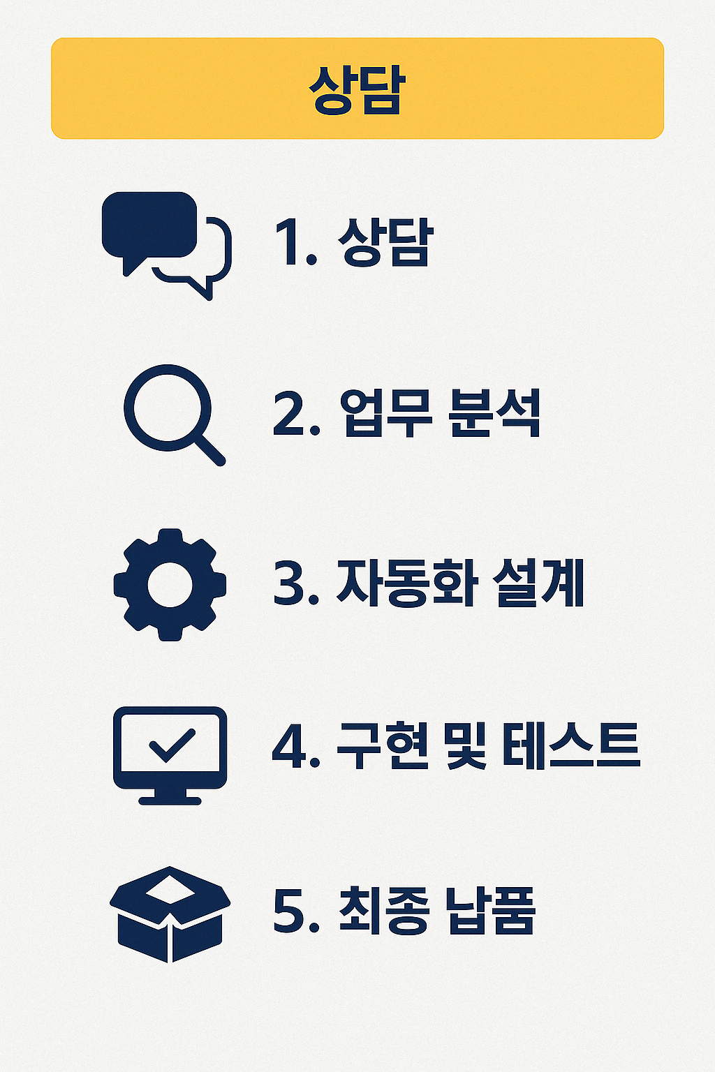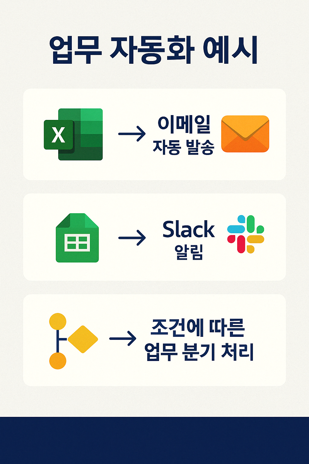 반복되는 엑셀/웹 작업, 클릭 한 번으로 자동화해드립니다.버튼 하나로 업무를 줄이고, 실수 없이 효율을 높여보세요. 업무 자동화, 클릭 자동화, 외부 연동까지 맞춤 설계로 제공합니다.이런 분께 추천합니다:클릭/복붙/정렬 등 반복 작업을 줄이고 싶을 때입력만 하면 자동 정리가 되도록 만들고 싶을 때조건별 분류 필터링 메일 발송을 자동화하고 싶을 때외부 API, 슬랙, 알림톡 연동 자동화가 필요할 때엑셀, VBA, 파이썬 기반 자동화를 원하는 실무자 1. 상담: 작업 흐름/파일 공유 및 요구사항 파악2. 결제: 패키지 확정 및 결제3. 1차 작업본 전달4. 피드백 및 수정5. 최종 작업본 전달 + 설치 가이드 제공※ 고객님의 피드백에 빠르게 응답하며,명확한 커뮤니케이션으로 높은 만족를 지향합니다. 자동화하려는 작업 흐름 정리 (텍스트 or 메모도 OK)사용하는 엑셀/시트/폼 예시클릭, 입력, 출력 방식 등 희망 동작 전달