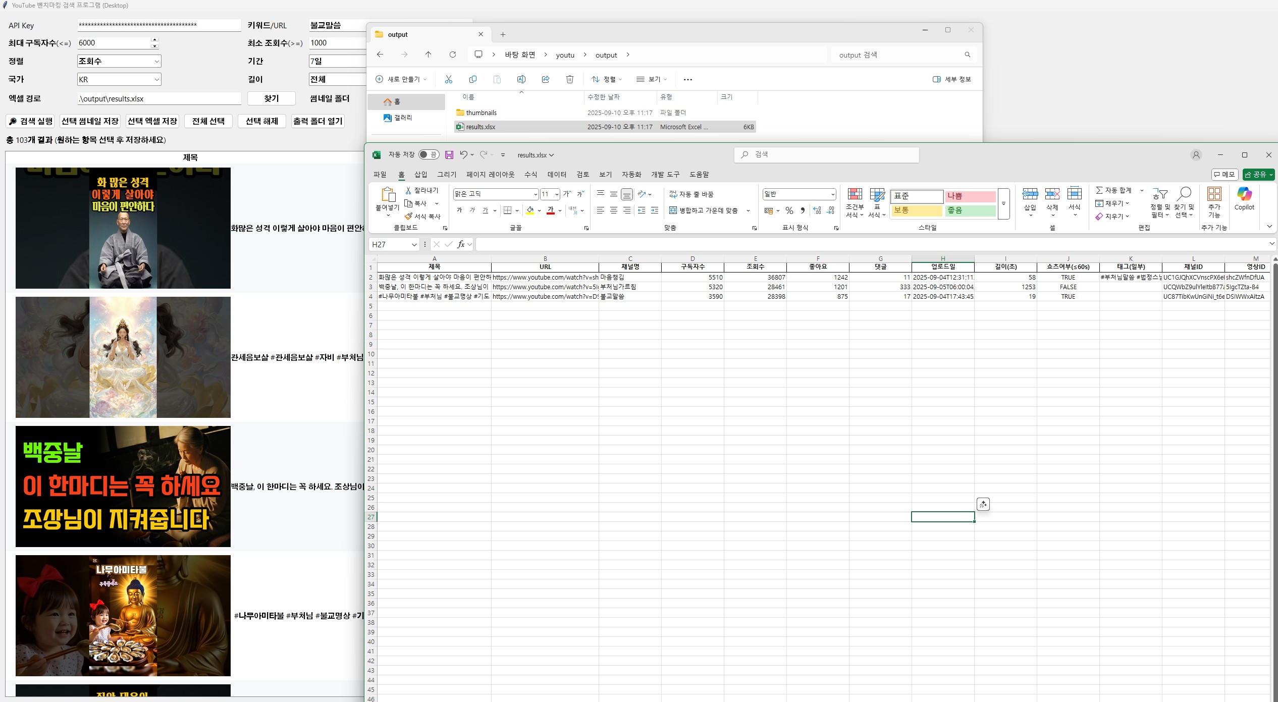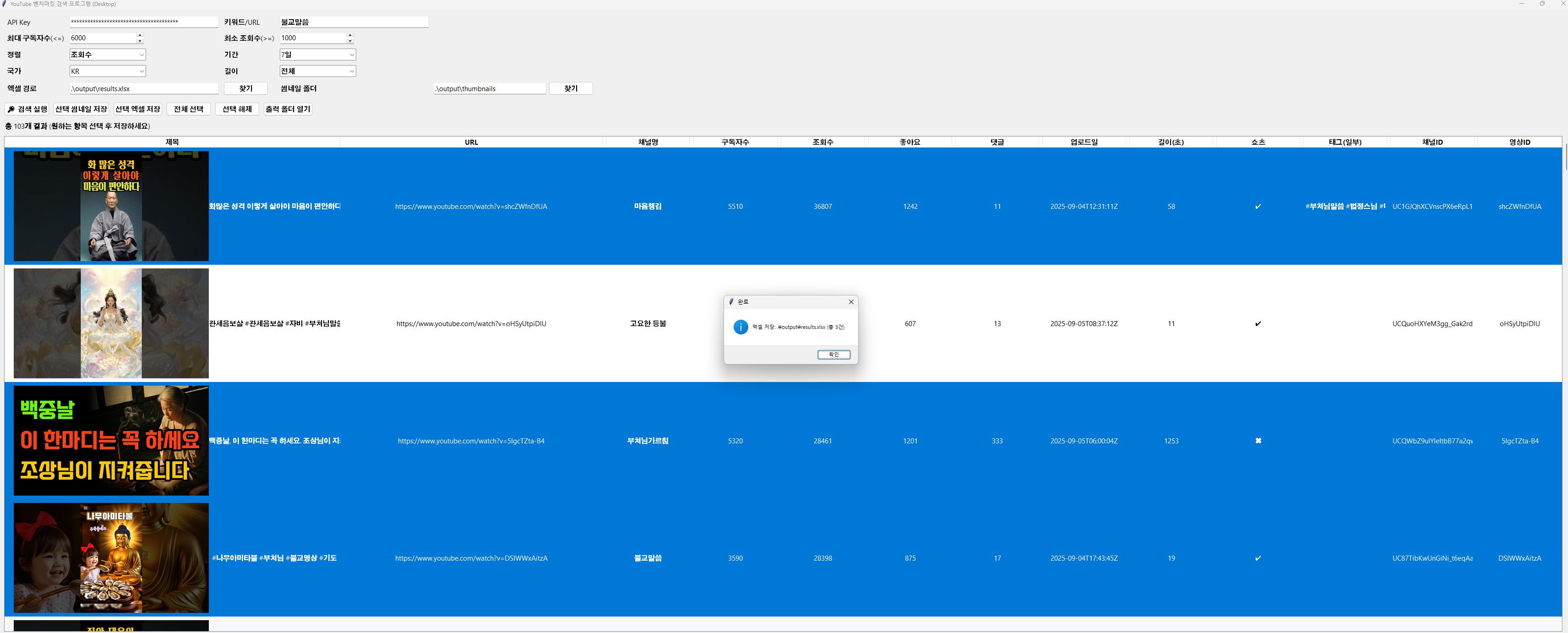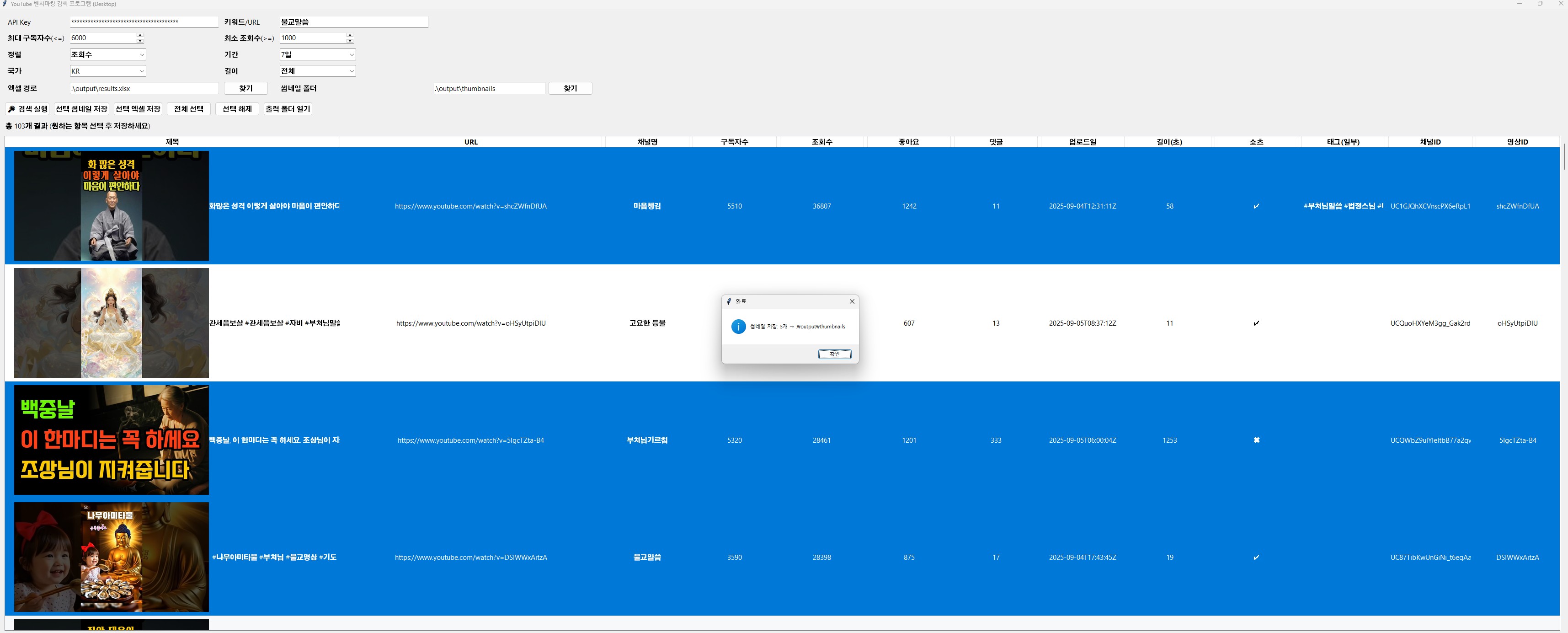 “새로운 영상 아이디어를 찾으려고 유튜브를 켜면,결국 몇 시간 동안 수십 개 채널을 돌아다니며비슷비슷한 콘텐츠만 보다가 지쳐버린 경험… 없으신가요?”처음엔 재미있게 시작했지만, 어느 순간부터는 단순한 노가다식 반복작업이 되어버립니다.분석 툴을 써보자니 매달 원치 않는 고정 구독료가 발목을 잡고,그마저도 ‘내게 꼭 필요한 기능만 쏙 빼서 쓰기’란 쉽지 않죠.그래서 제가 직접 만들었습니다.제가 이 문제를 해결하기 위해 직접 프로그램을 개발했습니다.“하루에 수십 시간씩 걸리던 영상 아이템 분석 작업을 단 5분으로 줄인다.”이 한 문장을 목표로, 정말 꼭 필요한 기능만 담았습니다.결과적으로, 이제는수많은 채널을 일일이 뒤지지 않아도 되고억지로 비싼 툴을 구독할 필요도 없으며클릭 몇 번이면 ‘진짜 데이터 기반’의 아이템을 뽑아낼 수 있습니다.이런 분들에게 특히 추천합니다유튜버 & 크리에이터: 감이 아닌 데이터로 성공 확률을 높이고 싶은 분1인 기업가: 경쟁 분석에 시간을 쏟느라 본업이 밀려난 분디지털 마케터: 빠르게 변화하는 트렌드를 정확히 읽어야 하는 분예비 창업가: 효율적인 콘텐츠/상품 아이템 발굴이 필요한 분프로그램 핵심 기능정밀 검색 – 키워드, 업로드 기간, 채널 구독자 수 등 원하는 조건으로 정확한 리스트 추출데이터 기반 분석 – 좋아요·댓글·조회수·참여도·반응률 등 실제 성과 데이터를 기반으로 선별썸네일 이미지 저장 /검색 결과 엑셀 내보내기 – 클릭 한 번으로 깔끔하게 정리된 결과 파일 생성기대 효과분석 시간 90% 단축 (하루 수십 시간이 5분으로)구독형 툴 대비 고정비 절약감(感)이 아닌 데이터 기반 전략 수립“노가다에 지쳐 영상 기획이 두려워지기 전에,데이터로 뒷받침된 확실한 아이템을 5분 만에 찾아보세요.”여러분의 시간은 아끼고, 성과는 극대화할 수 있도록 도와드리겠습니다.YouTube 벤치마킹 검색 도구주요 기능1. YouTube 데이터 검색 & 분석키워드/URL 검색: 원하는 키워드나 특정 영상 URL로 검색고급 필터링: 구독자수, 조회수, 업로드 기간, 국가별 필터다양한 정렬: 조회수, 구독자수, 좋아요수, 댓글수, 업로드일 순쇼츠/롱폼 구분: 60초 이하 쇼츠 영상 자동 분류2. 시각적 데이터 표시 ️ 썸네일 미리보기: 검색 결과에 썸네일 자동 표시 직관적 테이블: 큰 글씨, 중앙 정렬, 체크마크 표시 깔끔한 UI: 세로/가로 구분선, 번갈아가는 행 색상3. 데이터 저장 & 관리선택적 저장: 원하는 영상만 골라서 저장 가능 엑셀 내보내기: 모든 데이터를 Excel 파일로 저장썸네일 다운로드: 고화질 썸네일 이미지 일괄 저장기술 지원 (카카오톡, 당근 문의 가능)이런 분들께 추천리서처: 시장 조사, 데이터 분석학생/연구자: 논문 자료 수집, 연구용 데이터유튜브 초보자 또는 입문자사용법 (간단!)API 키 입력 (무료 발급)검색 키워드 입력필터 설정 (선택사항)검색 실행 결과 확인원하는 영상 선택 썸네일 저장안전 보장바이러스 검사 완료: Windows Defender 통과개인정보 보호: API 키만 사용, 개인 데이터 수집 없음오프라인 실행: 인터넷 연결만 있으면 어디서든 사용가능한 번 구매로 평생 사용! 지금 바로 시작하세요! 1단계. 의뢰 접수 & 요청사항 확인고객님께서 원하시는 키워드, 분석 범위, 조건(예: 업로드 기간, 채널 구독자 수 등)을전달해주시면 됩니다.특별한 요청사항이 없다면, 기본 제공 포맷으로 진행합니다.2단계. 프로그램 제공 & 사용 가이드 전달요청사항 확인 후, 맞춤 설정이 가능한 프로그램을 전달드립니다.설치 및 실행 방법, 그리고 활용 팁까지 정리된 간단 가이드 문서를 함께 드려바로 사용하실 수 있습니다.3단계. 초기 테스트 & 데이터 확인고객님께서 직접 실행해보시고 원하는 결과(리스트 추출, 분석 데이터 등)가잘 나오는지 확인합니다.혹시 불편하거나 추가 요청사항이 있다면 이 단계에서 말씀해주시면 됩니다.4단계. 최종 완료 & 후속 지원이상 없이 사용 확인이 완료되면 서비스는 마무리됩니다.단순 전달에서 끝나는 것이 아니라, 초기 사용 중 문제가 생길 경우추가 가이드 및 간단 Q&A 지원도 제공해드립니다. 1. YOUTUBE 콘솔 API 키프로그램 실행을 위해서는 고객님 개인의 YOUTUBE 콘솔 API 키가 필요합니다.API 키 발급 방법은 별도 안내 문서를 통해 확인하실 수 있으며,발급 과정에서 어려움이 있을 경우 문의주시면 지원해드립니다.2. 운영 환경본 프로그램은 Windows 환경에서만 실행 가능합니다.MacOS 및 기타 운영체제에서는 정상 작동하지 않으니 유의 부탁드립니다.3.추가 기능 요청 시프로그램 내 기본 제공 기능 외에 추가 기능을 원하실 경우,[문의하기]를 통해 상세 기능 요청 내용을 남겨주시면 검토 후 별도 견적을 안내드립니다.요청 범위에 따라 개발 가능 여부 및 소요 기간이 달라질 수 있습니다.