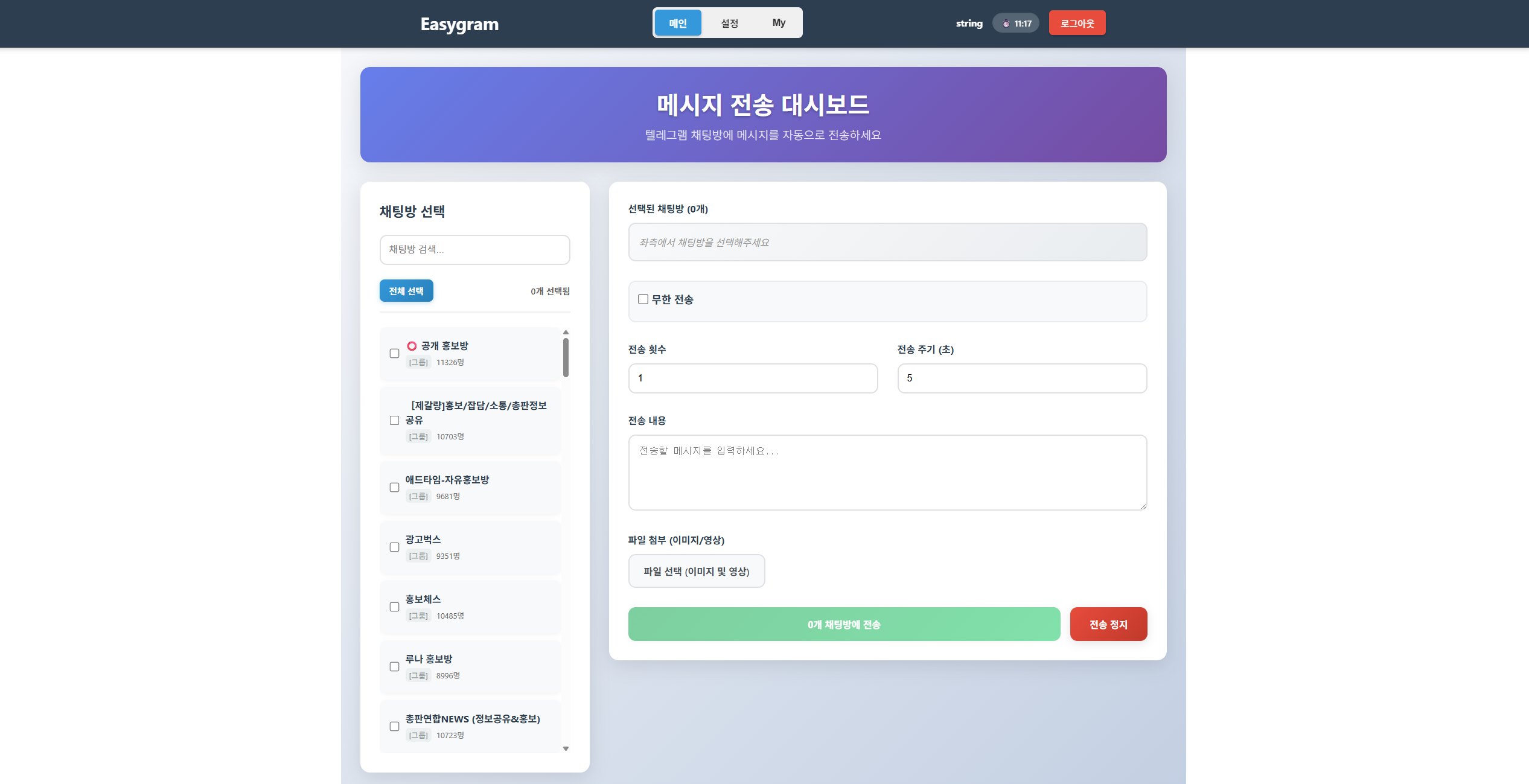 텔레그램 홍보에 필요한 솔루션, 이지그램을 소개합니다.저희는 3년째 자동화 솔루션을 연구하고, 더 나은 경험을 드리기 위해 노력하는 팀입니다.기존 텔레그램 메시지 자동화 발송 프로그램들은 개발자 봇 계정을 기반으로 하기 때문에,이미 운영 중인 채팅방을 그대로 활용하지 못해 매번 새 채팅방을 만들거나 새로운 계정을 참여시켜야 하는 번거로움이 있었습니다."봇 계정을 만드세요""새로운 채팅방을 개설하세요""잘 운영되고 있는 채팅방이 있는데 왜 처음부터 다시 시작해야 하는 거죠?""멤버 1,000명을 다시 모으라고요? 그동안 쌓아온 대화 내역은 어떻게 하고요?"위 내용은 기존 프로그램을 사용하던 고객들의 실제 사례이자 피드백입니다.다른 자동화 프로그램들도 비슷한 방식으로 서비스하고 있습니다.편하게 마케팅하기 위해 프로그램을 사용하려고 보니 고객 관점에서는 매우 불편한 방식을 감수해야합니다.이지그램은 다릅니다.이지그램은 기존 봇 계정을 통해서 메시지를 전송하는 방식이 아닌, 실 사용자의 계정으로 메시지를 발송할 수 있습니다.내 계정으로, 원하는 어느 채팅방이든, 메시지/사진/이모티콘 모두 보낼 수 있는 진짜 솔루션 이지그램은 다릅니다.1. 노로그 (No Log) 정책 및 보안 정책을 준수하고 있습니다.텔레그램의 보안 프로토콜을 연구하여, 복호화가 불가능한 수준의 보안으로 운영하고 있습니다.사용자의 접속 IP, 단말정보 등의 고객의 개인정보는 일체 저장 및 관리하고 있지 않습니다.메시지 내용, 전송한 상대방 정보 등의 메시지 내용은 모두 암호화하여 관리하며, 이는 관리자도 알 수 없는 내용으로 암호화됩니다.3년간 단 한 건의 보안 사고도 없었습니다. 이건 운이 아니라 우리의 철저한 보안 설계 덕분입니다.2. 3년간의 솔루션 운영 경험으로, SLA 99.999%를 보장합니다.서비스 중단 시간을 최소화하여 고객님의 마케팅 활동이 끊기지 않도록 24시간 모니터링 체계를 구축했습니다.장애 상황에도 즉시 복구할 수 있는 백업 시스템을 운영하고 있어, 안정적인 서비스 이용이 가능합니다.3. 여러 계정을 제한 없는 간격으로 메시지를 전송할 수 있습니다.기존 솔루션들의 가장 큰 한계는 계정/시간 당 발송량 제한과 발송 간격 제약이었습니다.하루 몇 백 건만 보내도 계정이 차단되거나, 메시지 간 대기시간이 길어져 효율성이 떨어지는 문제가 있습니다.이지그램은 여러 계정을 동시에 연결하여 발송량을 분산시킬 수 있어, 대량 발송이 필요한 경우에도 안정적으로 운영할 수 있습니다.5. 직관적이고 간편한 사용법으로, 누구나 5분 안에 설정 완료가 가능합니다.복잡한 설정 과정이나 기술적 지식이 필요하지 않습니다.텔레그램 계정만 있다면 바로 시작할 수 있으며, 메시지 예약 발송, 대상 그룹 선택, 발송 주기 설정 등 모든 기능을 클릭 몇 번으로 완성할 수 있습니다.대부분의 타 서비스는 복잡한 요금제를 가지고 있습니다.- 월 정액제 (사용량 제한)- 초과 요금- 숨겨진 추가 비용- 해지 위약금이지그램은 단순합니다.높은 구독료에 망설이시는 고객들을 위해 준비했습니다.사용한 만큼만 지불하세요.복잡한 계산 필요 없습니다. 투명합니다. 정직합니다.지금 이 순간에도 수많은 텔레그램 운영자들이 수동으로 메시지를 전송하고 있을 겁니다.새로운 봇 계정을 만들어야 하나 고민하고 있을 겁니다.기존 채팅방을 포기하고 새로 시작해야 하나 망설이고 있을 겁니다.그런 분들께 자신 있게 말씀드립니다.더 이상 고민하지 마세요. 해답이 여기 있습니다. 판매자가 제공하는 exe파일 다운로드본인 텔레그램 계정(API ID/HASH + 전화번호 인증) 연동채팅 목록 자동 불러오기메시지 작성 및 자동 발송 지원위 과정을 통해 설치 없이 웹에서 본인 텔레그램 계정으로 안전하고 편리하게 메시지를 발송할 수 있습니다. 텔레그램 API ID와 API HASH전화번호 인증이 가능한 본인 텔레그램 계정**판매자가 제공하는 웹서비스 로그인 계정(ID/PW)**으로 접속 준비인증 후 웹 UI에서 메시지 발송을 진행위 준비 사항을 완료하시면 웹서비스에서 안전하고 간편하게 메시지 자동 발송을 이용하실 수 있습니다.