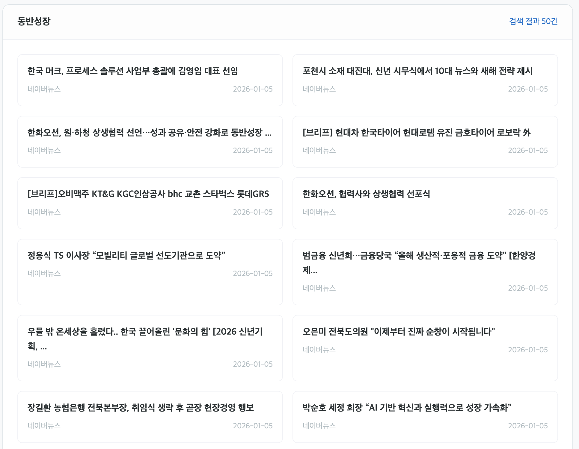 1. 누구라도 쉽게 사용이 가능한 N포털 뉴스 검색 프로그램입니다.(최대한 간결하게 제작하였으며, 웹페이지 URL 형태로 보내드립니다. 별도 설치 없이 즐겨찾기 등록 가능합니다. PC/모바일웹에서 가독성 높은 UI로 작업합니다. 원하시는 배경이나 브랜드 컬러로 커스텀 가능합니다.)2. 원하시는 검색 키워드로 기사 검색이 가능합니다.3. 프로그램 상의 오류는 무상으로 수정해드립니다.(기능 추가 개발이 필요하시면 요청 주세요)4. 해당 자료의 저작권은 해당 서비스의 전문가에게 있습니다. 1. 상품을 결제하고 원하시는 기사 키워드를 요청합니다.2. 크몽을 통해 결과물을 제공 받습니다.3. 작동 테스트를 합니다.4. 최종 구매확정을 합니다.5. 리뷰와 피드백 적극 반영합니다. 소중한 의견 남겨 주세요. 크몽 채팅을 통해 요청사항 남겨주시면 최대한 신속하게 답변 도와드리겠습니다.기능 추가나 리스트 결과물 작업도 추가 의뢰 가능합니다.