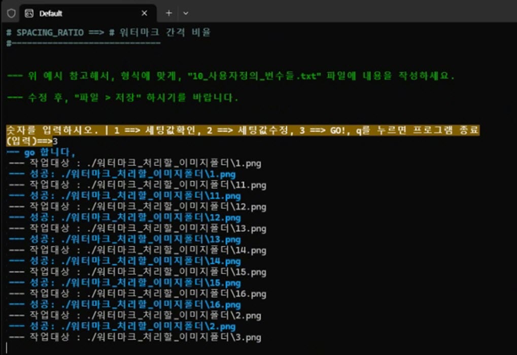 이미지/사진 파일에, 워터마크를 찍고 싶으세요?^^걱정마세요!워터마크 찍는 매크로가 있습니다~!ㅎㅎ손쉽게, 이미지/사진 파일들에다가, 일괄적으로 워터마크를 쫘르르~ 새길 수가 있습니다!^_^ㅎㅎㅎㅎ많은 관심 바랍니다!!!ㅎㅎㅎㅎ{ 거래 정보 }ㅡ 윈도우락 라이센스 : 5만원 / 1PC-윈도우환경(윈도우락 라이센스는, 지정된 컴퓨터의 현재 기 설치되어있는 윈도우 내에서만 실행이 됩니다.추후 컴퓨터가 바뀐다거나, 윈도우를 재설치/포맷 등으로 인해 윈도우 환경이 바뀐다면, 프로그램은 작동이 되지 않으며, 보상이나 라이센스 재발급은 없습니다.)ㅡ 컴퓨터락 라이센스 : 8만원 / 1PC(컴퓨터락 라이센스는, 컴퓨터나 컴퓨터 부품이 바뀌면 작동안될 수 있으며, 보상이나 라이센스 재발급은 없습니다.)(라이센스 "2개" 이상 한번에 구매시 할인적용 => 10% 할인)* 본 프로그램은, PC용 프로그램이며, Windows 10 또는 11 에서 작동이 가능합니다.(64bit에서만 작동이 됩니다. 32bit에서는 작동안됨)* AS 는 납품 후 7일 까지 입니다.* 의심이 많으실 경우, 테스트 사용 후 구매하시는 방법도 있으며,이 경우, 테스트 사용료 2만원을 추가로 지불하시면 됩니다.2만원 결제 후 24시간 동안 사용해보시고, 구매 결정하시면 됩니다. { 서비스 제공절차 }1. 프로그램 주문내용 및 금액협의2. 결재3. 프로그램 제작 및 제공4. 프로그램 작동 검토.5. 구매확정6. 라이센스지급# 결재 이후 수정요구사항은 추가계약사항입니다.-- 끝 -- { 의뢰인 준비사항 }1. 본인의 컴퓨터가 64비트인지 32비트인지 확인필요 (64비트만 가능하고, 32비트에서는 작동불가함)